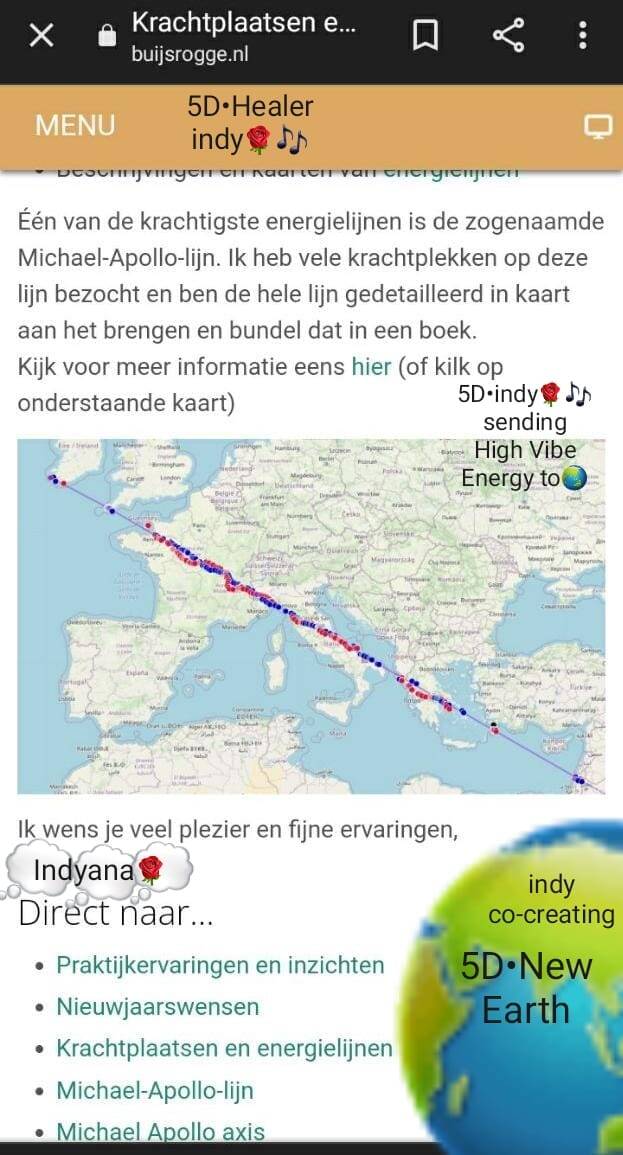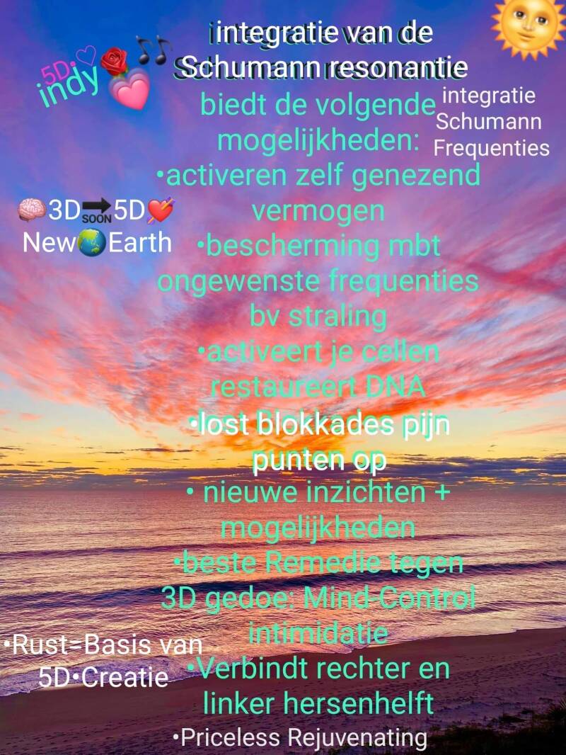 Indy heeft veel met de Schumann Resonatie & oefeningen gewerkt en aan de Schumann Cursus Trainingen deelgenomen plus aan vele wekelijkse bijeenkomsten. Bij de wekelijkse Updates heeft ze elke keer de (Meditatie) oefening meegedaan en met de grote groep (met meer dan 100-160 mensen) energy verzonden naar allerlei plekken.